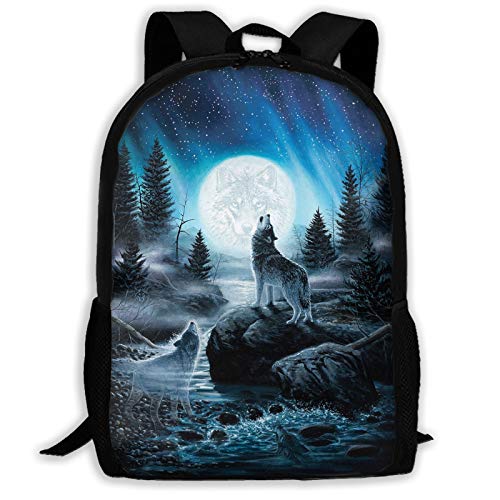 lowes Wolf Backpack Forest Moon Bookbag Cool School Backpack Travel Daypack Computer Camping Rucksack Water Resistant for Boys Girls Men Women Idea Gift for Back to School Supplies